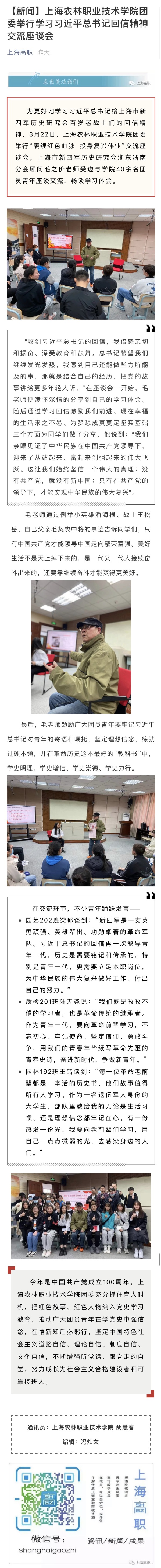 3月24日,上海高职微信公众号报道我院学习习近平总书记回信精神交流座谈会,全文如下: