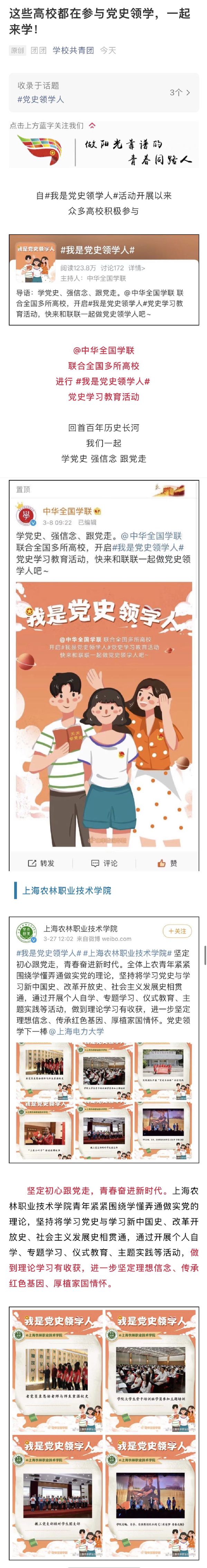 近日,学校共青团微信公众号报道我院“我是党史领学人”党史学习教育。全文如下: