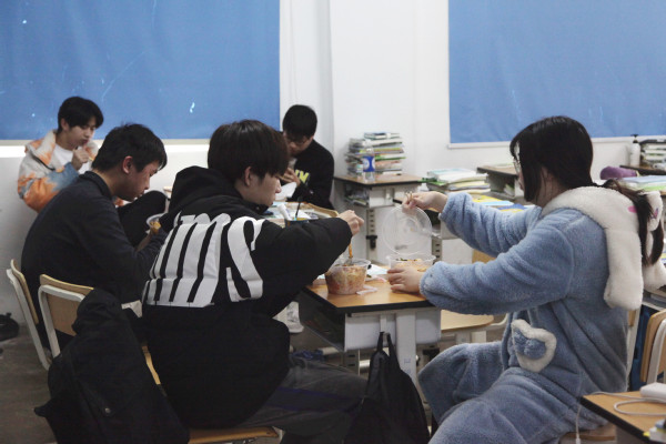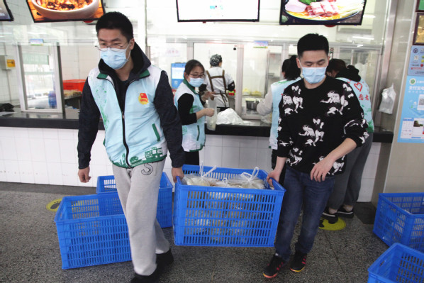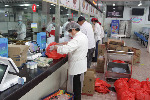 自接到闭环管理通知,学校后勤部门紧急调配校内外物资,包括护目镜、隔离衣、鞋套手套等防疫用品,行军床、睡袋、床垫、被子、毛巾等生活用品,以及矿泉水、方便面等食品,并紧急召集食堂各班组长开会商讨闭环管理期间师生三餐就餐和配送问题。闭环管理期间,学生和教工餐厅免费向师生提供早中晚三餐,食堂工作人员加班加点赶制食物,餐食由志愿者分批次送到学生宿舍、教室、各办公楼,全力保障师生饮食安全吃得放心满意。