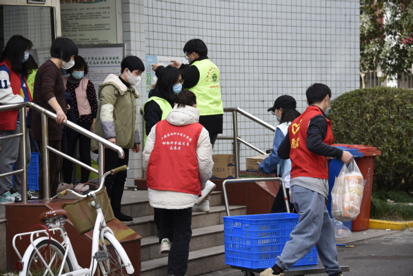 在学校进行闭环管理之际,党委组织部发出号召,二级党组织积极响应,线上线下发动疫情防控志愿服务通知。全校师生积极响应志愿号召,尤其是党员教师积极带头报名参加,全力投身疫情防控志愿服务。他们身穿志愿马甲、佩戴口罩,奔波于教室、学生宿舍、办公楼等区域。他们“舍小我为大我”的志愿服务,不仅为广大师生送去舌尖上的温度,更是一份份温情守候。