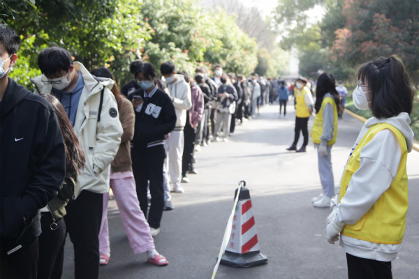 上农青年志愿者引导大家进入检测点