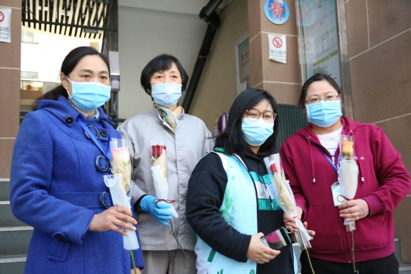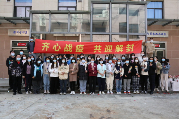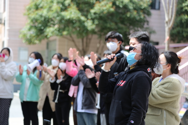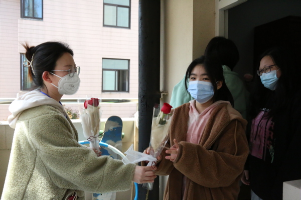 学工部部长沈悦宣布:“学生公寓8号楼正式校内解封”,迎来了同学们发自肺腑的掌声和欢呼声。14天以来,8号楼全体同学们积极配合学校防疫工作,听从指挥,服从命令,基于“四个一”防控体系:一张清单、一套标准、一套流程、一套监督机制,有条不紊的开展学习、生活,终于迎来了解封时刻。这是全校师生众志成城,同心抗疫的成果。8号楼楼长石千千同学感慨:“感谢全体志愿者的辛苦付出,感谢宿管阿姨、保洁阿姨、后勤人员的全力以赴,感谢各位老师的暖心相伴,更感谢学长学姐的隔空合唱,因为有你们,我们不孤单。”仪式上,学院艺术团学生激情献唱青春励志歌曲,共同欢庆抗疫阶段性胜利。最后,学生工作部组织班主任为8号楼全体学生献花,送上温馨祝福,并感谢她们对疫情管理工作的支持与理解。