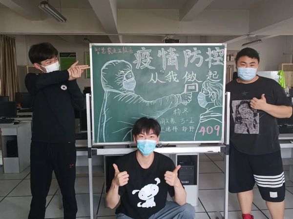 同学们凝心聚力抗击疫情的同时,踊跃报名,展示当大学生青春风采和对校园生活的热爱。在“疫情防控 从我做起”主题团日活动中,各位团支书带领团支部成员线上学习疫情防控政策文件,宣传疫情防控知识,督促同学们每日健康上报,配合学院疫情防控工作。在“守护生命 共克时艰”抗疫宣传活动中,共收到几十条投稿,同学们通过视频、语音、海报、漫画、书法、速写、征文、海报等方式,讲述抗疫故事,传播正能量。从记录多彩“疫”路vlog活动中,我们看到了当代大学生的青春活力,网络212班的郑文杰记录了他在疫情隔离期间的“24小时”,从早上6点30起床、锻炼身体、吃早饭,到8点30按时上网课,“云上大课间“放松心情,再到晚上参与宿舍楼内志愿服务工作,22点30准时上床睡觉,充实而幸福,他在分享自己快乐的同时,传递了积极向上的生活态度,为其他同学树立了榜样。在打卡“线上观影室”活动中,班干部组织同学们线上观看励志影片,大家积极进行弹幕互动,加深了患难与共、团结友爱的同学情谊,《穿越寒冬拥抱你》影片极大鼓舞了同学们抗击疫情的斗志,《钱学森》影片则发挥了榜样的力量,激励着同学们奋发图强,勇攀高峰。在“抗疫有我 用爱歌唱”活动中,同学们用歌声唱出了抗疫必胜的信心,展现了当代青年的朝气与活力,《我爱你中国》《尚农之歌》等歌曲更是唱出了智工学子的拳拳爱国、爱校之心。“疫情防控 从我做起”主题黑板报评比活动深得同学们喜爱,是面向暂住在农信楼教室的走读学生而推出的特色活动,也是本次系列活动中唯一线下活动,同学们积极响应、认真策划,以疫情隔离生活为内容,采取了形式多样的排版作画,让人印象最为深刻的是409教室的黑板报,画功了得,主题突出,宣传十分到位。