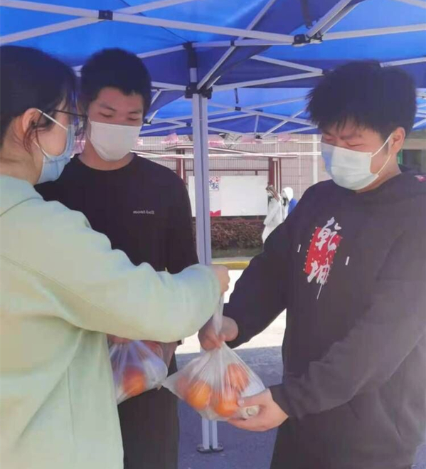 “被全体老师‘宠’,这种感觉太温暖了。”生物201班秦文静同学激动地表达内心的真情实感,“经历这一场‘战疫’,感觉责任就在自己肩上,战‘疫’终将必胜。”物联网211班周佳莉同学说:“作为一名学生志愿者,应该在关键时刻做表率。当知道学校为我们购置了水果,需要志愿者帮忙分发时,我第一个报名参加,尽一份绵薄之力。”