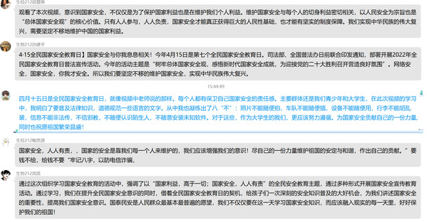 学校党委理论学习中心组进行了专题学习。党委理论学习中心组成员在“学习强国”学习平台上自觉学习“习近平论坚持总体国家安全观”专题的基础上,4月15日下午进行了线上集中学习并交流了学习体会。坚持总体国家安全观,是深入学习贯彻习近平新时代中国特色社会主义思想的重要内容。要加强宣传引导,将国家安全知识融入日常,变成全体师生必备的常识。要把国家安全贯穿到学校工作各方面全过程,切实增强师生的安全观念和忧患意识,不断增强践行总体国家安全观的自觉性、坚定性。在疫情形势严峻的特殊时期,要不断夯实学校安全基础,履行安全责任,让师生有安全的学习工作生活环境。