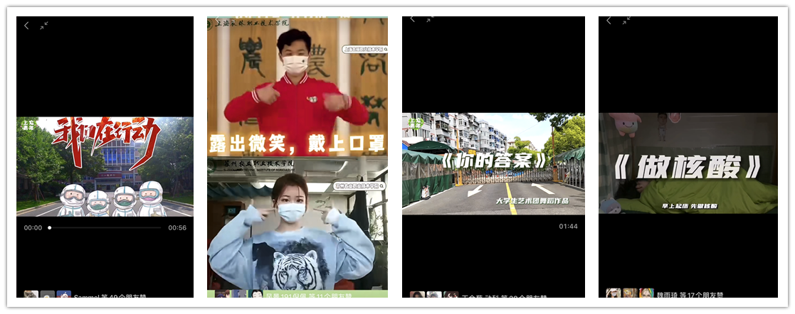 在院团委、学生会的组织下,广大上农青年紧扣疫情防控主题,发挥拍摄、绘画、书法、舞蹈等特长,创作了传递温暖的优秀征文、海报、书法、微视频、原创歌曲、手势舞等60余件作品,用“学、写、说、唱、舞、绘”等形式发出铿锵有力的青年之声,以青年学生喜闻乐见的方式弘扬积极健康的抗疫正能量。其中“战疫手势舞”通过视频号与苏州农业职业技术学院开展互动;“上农青年 同心战疫”海报组图,“上农青年在行动”“你的答案”“做核酸”等舞蹈作品被青春上海微信公众号、上海松江视频号、青春松江、七彩岳阳等微信公众号转载、报道,体现了青年视角下的青年担当、青年力量,流淌着守望互助的成长感悟。