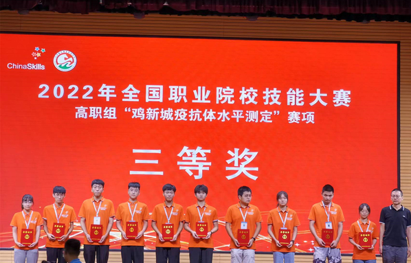 8月17日至19日,2022年全国职业院校技能大赛(高职组)“鸡新城疫抗体水平测定”赛项在山东畜牧兽医职业技术学院举行。学院动科系学生但仁和钟隆发在此次全国职业技能大赛中沉着应对,荣获团体三等奖。