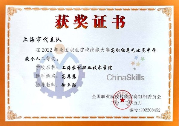 8月21日至27日,2022年全国职业院校技能大赛高职组花艺赛项在湖北生态工程职业技术学院举行,共有全国28个省市、54支不同院校代表队的选手同台竞技。植科系学生高恩慈在此次全国大赛中突出重围,最终荣获二等奖。