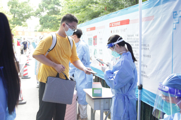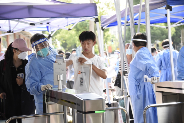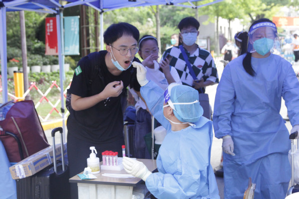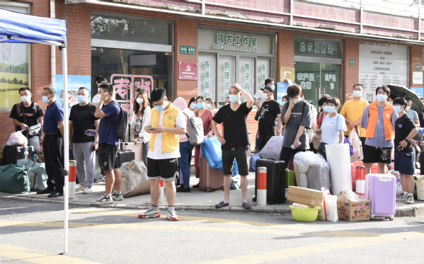 新生进校后,排队做核酸