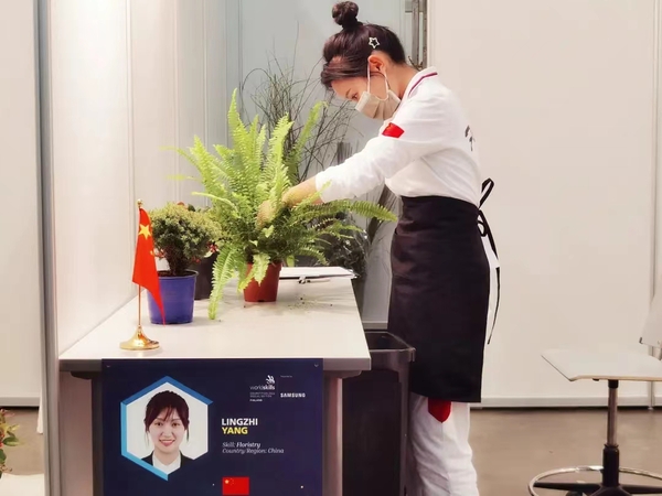 2022年世界技能大赛特别赛芬兰赛区于当地时间10月19日开幕,花艺项目比赛20日开始,23日结束,历时4天,中国选手杨灵芝与来自14个国家和地区的选手同场竞技。比赛期间,参赛选手依据现场提供的花材,在规定时间内完成植物设计、花瓶装饰、新娘花饰、花首饰、花束、切花装饰、房间装饰、物件装饰等8个项目的制作。在世界技能大赛中国技术指导专家组组长朱迎迎带领下,杨灵芝经过四天的激烈比拼,最终取得第四名,获得优胜奖。