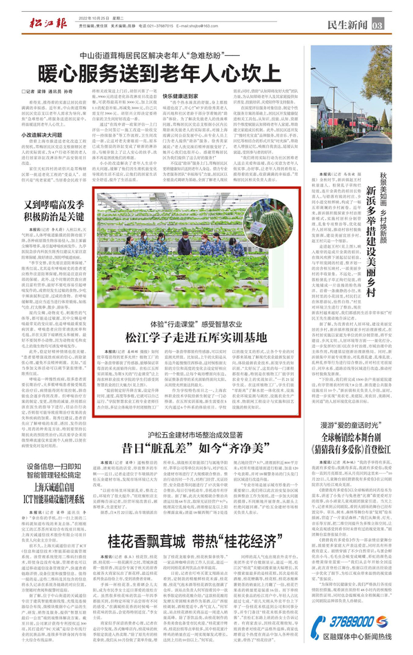 10月25日,松江报第三版刊载了上农学子在五厍实训基地植物工厂,“零距离”学习了解专业知识,体验智慧农业。