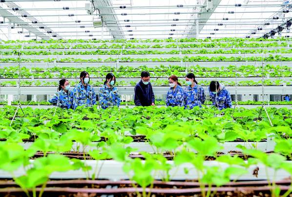 如何使草莓苗得到更多光照?植物工厂的每一条苗带都装了传感器,能够保证草莓苗的采光面始终向阳。在松江五厍实训基地,为期5天的“行走课堂”让上海农林职业技术学院的学生们感受到智慧农业的巨大魅力。
