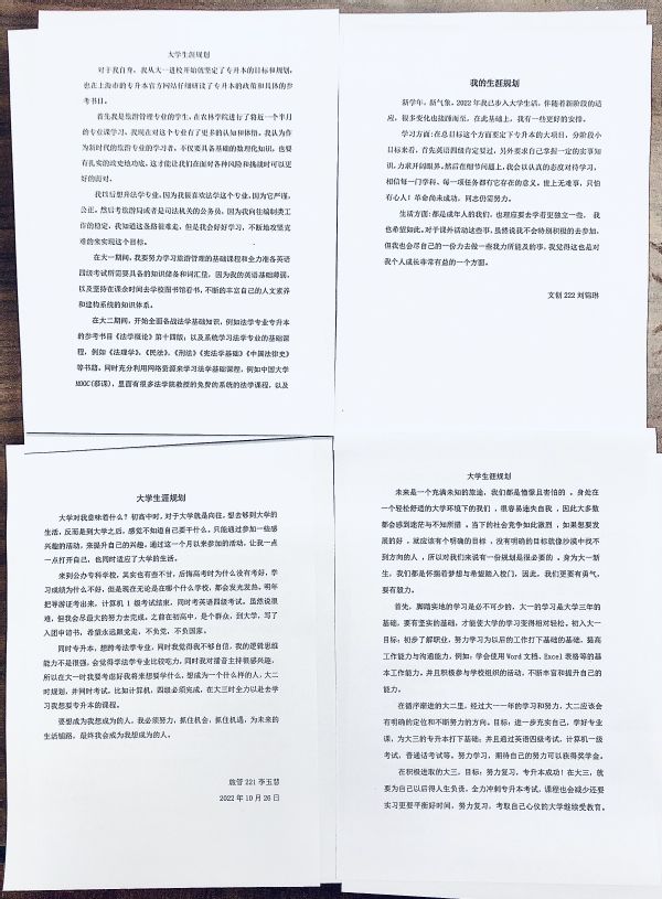 同学们感谢老师们无微不至的关爱,每位同学都认真撰写了一份大学生涯规划,表示一定不负学校厚望,励志向上,用实际行动书写满意答卷。
