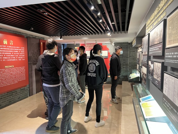 最后,大家在中共四大纪念馆跟随现场讲解员的脚步,踏着红色的足迹,回顾了那段峥嵘岁月。纪念馆内的会议通知、会址的考证、党的第一份日报《热血日报》、大会文件等资料,真实呈现了中国共产党可歌可泣的奋斗历程,现场通过AR技术、影像资料、多媒体投影等现代科技真切反映了中国共产党在虹口的战斗历程,展现了共产党人坚定的共产主义信仰和坚贞不屈、追求自由的斗争精神。