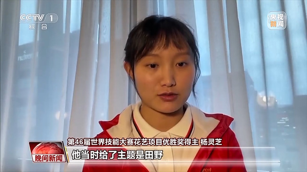 第46届世界技能大赛花艺项目优胜奖得主 杨灵芝:在学习花艺之前,我认为的花艺可能就是像花店里面那种插插花泥、打打花束那样的工作,但是学习之后,我发现它并不是这样的,它可能会用到一些电钻、锯子,包括劈竹子的大砍刀,算是一个体力活,对于女孩子来说也是个不小的挑战。我觉得做一名花艺师是一件很幸福的事情,是通过我的双手和花把美好的事物以及幸福传递给别人。