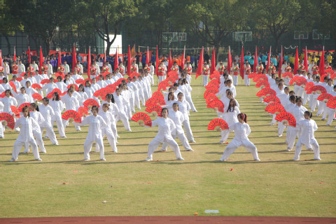 开幕式上,表演节目精彩纷呈。有非物质文化遗产《战鼓士气》、教工健美操《向快乐出发》、舞龙队表演《潜龙腾渊》、学生啦啦操《本草纲目》以及大型功夫扇《中国功夫》。尤其是功夫扇表演,作为中华传统体育项目在学校开展的如火如荼,表演赢得了满场喝彩。