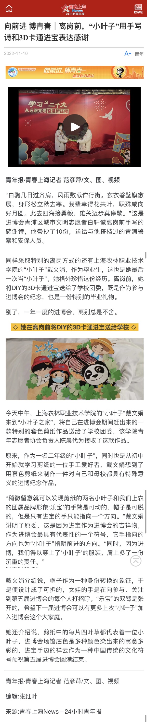 青年报视频号:【向前进 博青春】“小叶子”们就要结束在进博会的工作了