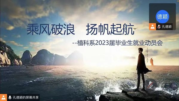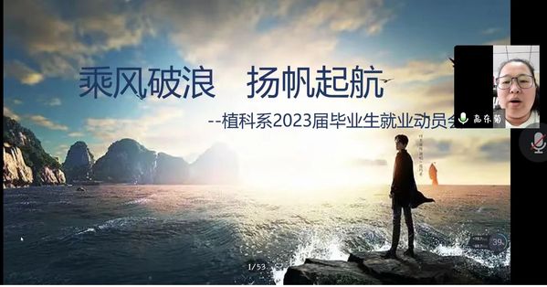 为提高2023届毕业生就业能力和质量,帮助学生树立积极的就业意识和良好心态,顺利进入职场开始职业生涯,11月10日晚,植科系在线上召开就业动员会,党总支书记高东菊、系副主任成文竞以及2023届248名毕业生参加动员会。会议由毕业班辅导员孔德颖主持。