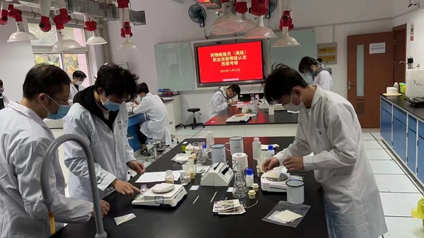 药物检验员作为行业特有工种,生药系率先与上海医药行业协会达成战略合作协议,并完成了上海第一个以校企合作形式进行的职业技能等级认定。本次药物检验员(高级)职业技能等级认定分为理论考核和技能考核,其中技能考核需完成基础技能考核和专项技能考核。