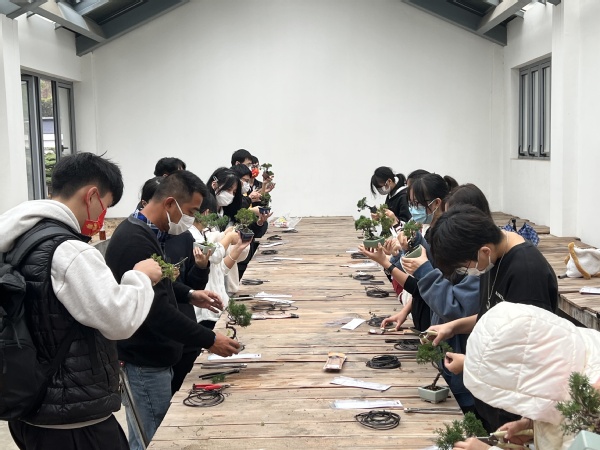 本次活动形式新颖,深受师生喜爱。大家纷纷表示,这种沉浸式学习真是一种美妙的享受,不仅对海派盆景技艺有了更加深入的理解,提升了审美情趣,而且增强了对传统文化的认同。园林系党总支将继续坚持把青年工作作为战略性工作来抓,给青年学生们提供更多更好的专业实践机会,提升专业素养,助力学生们成长成才。
