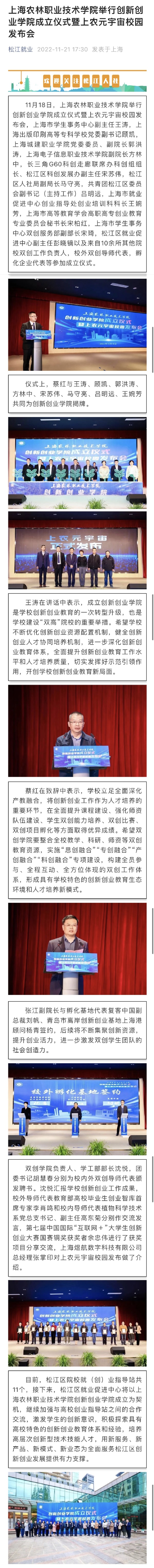 松江就业:上海农林职业技术学院举行创新创业学院成立仪式暨上农元宇宙校园发布会