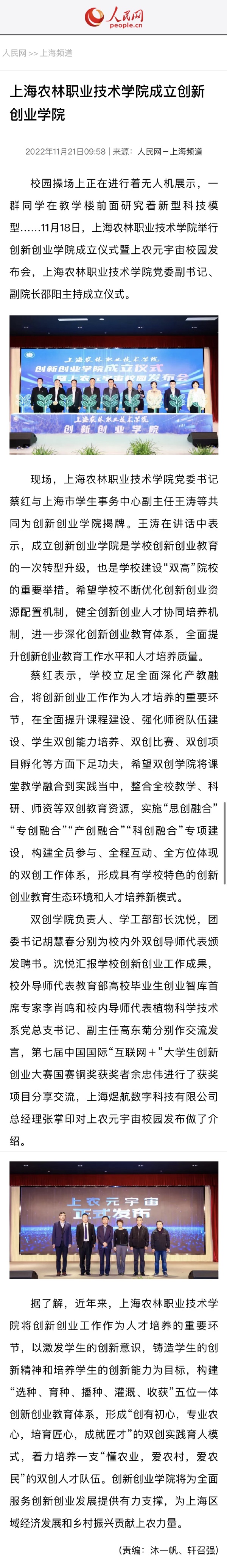 11月21日,人民网、松江就业微信公众号分别报道学院成立创新创业学院。