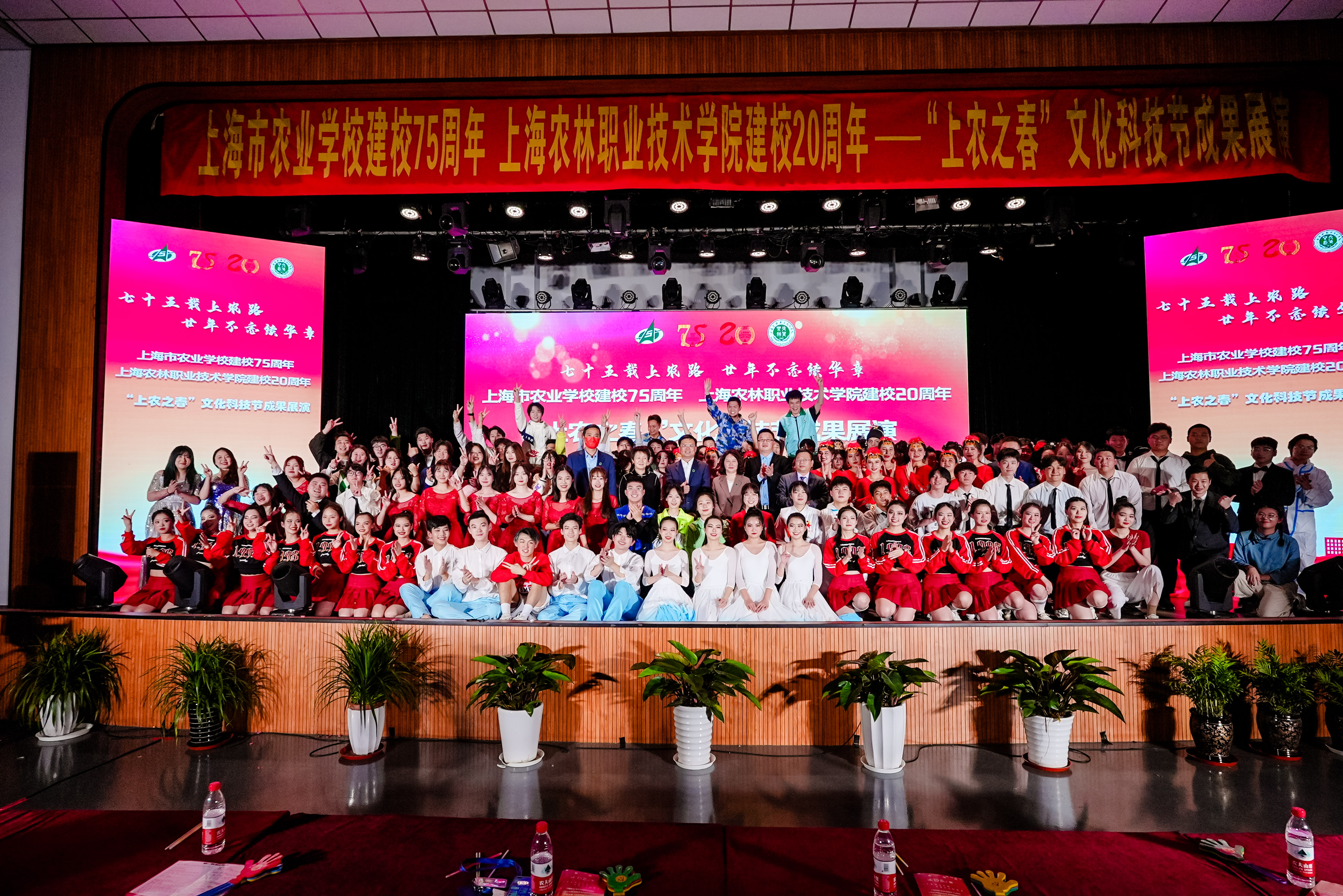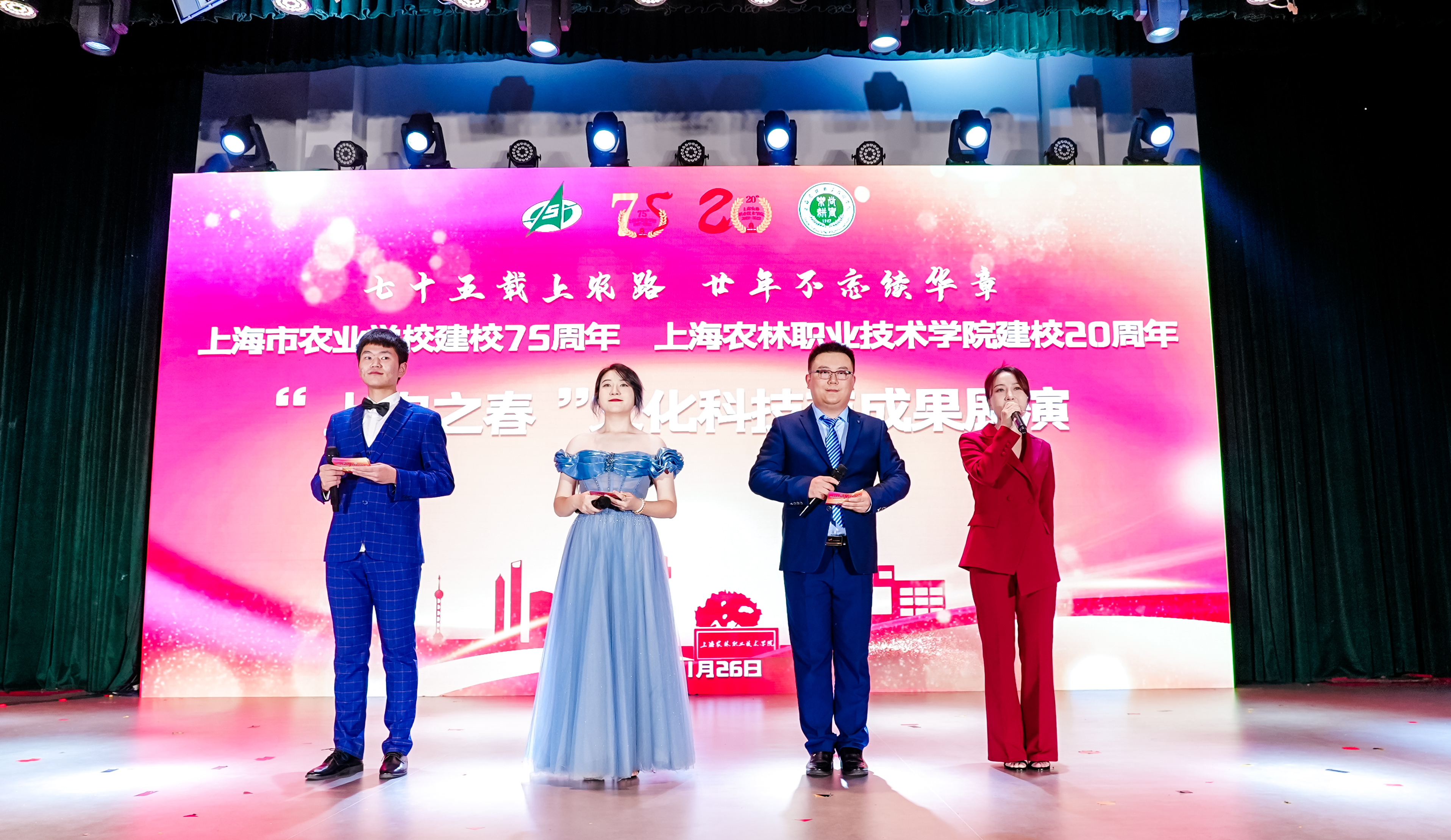 11月26日晚,在大礼堂举行“七十五载上农路 廿年不忘续华章”上海市农业学校建校75周年、上海农林职业技术学院建校20周年系列活动——“上农之春”文化科技节成果展演,学校党政领导蔡红、陈立婧、陈谊、邵阳、费国强、张江以及相关职能部门负责人,各党总支负责人,师生代表、校友代表一同参加展演活动。