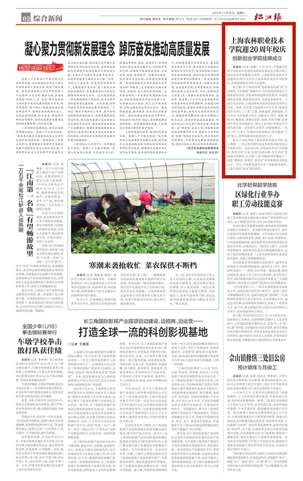 11月30日,松江报第二版报道学校举行市农校建校75周年、农林学院建校20周年大会系列活动。