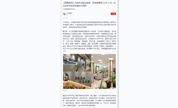 12月2日,松江融媒体中心“学习强国”号报道学校举办产教融合背景下的农业职业教育高质量发展论坛系列活。