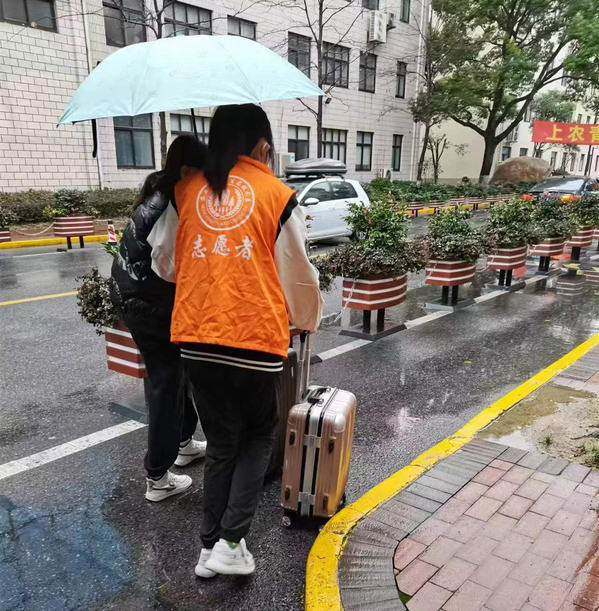返校前一天,生药系团总支召开了返校志愿服务工作部署会,针对劳工作分工、服务区域划分、服务内容和时间等做了详细要求和部署,对全体志愿者们进行了服务培训,返校当天,志愿者身着橙色志愿者服装,早早来到各自的工作地点集合。他们或为学生搬运行李、或引导家长有序停车、或进行文明引导。连绵细雨挡不住志愿者的服务热情,他们用满腔的热情迎接返校的同学。