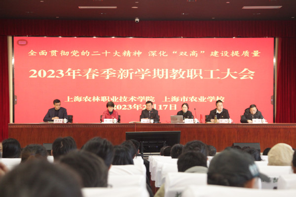 2月17日,在205报告厅,学校召开2023年春季新学期教职工大会。党政领导班子出席。党委书记蔡红主持会议并作重要讲话。