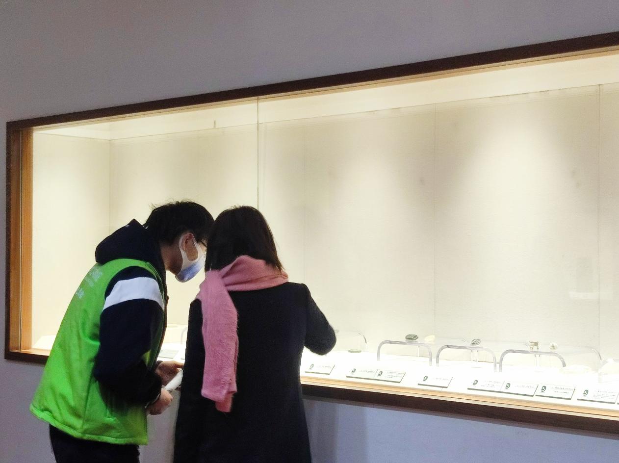 在正式志愿服务讲解前,志愿者们进行了上岗培训,由松江博物馆的老师进行培训指导。2月18日、19日,志愿者们早早来到博物馆候场,戴好口罩,身着绿色马甲提前在各自负责的区域站好,静候开馆。“您好,这边是松江地区史前文化遗址展区,主要由四个文化类型组成……”“您好,这边是唐宋时期的佛教建筑遗址及相关文物展区……”在讲解过程中,志愿者们分工合作、互相学习,从史前新石器时代到文化经济繁盛的明清时期松江地区的社会经济文化发展脉络清晰地展现在游客面前,通过讲解唤起大家对历史的珍视,对国家和民族的热爱。同时,同学们在解说过程中收获良多并发表了志愿服务感言。