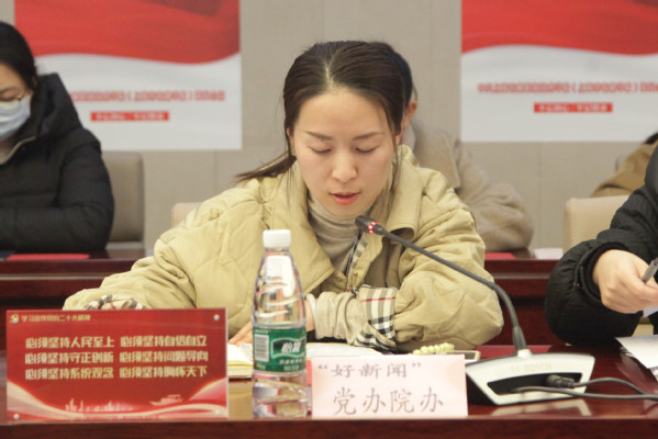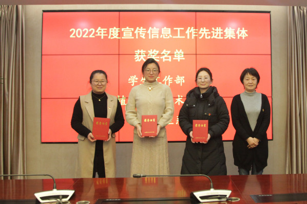 陈谊副书记在讲话中对“好新闻”获奖部门、先进集体和先进个人表示祝贺,对全体宣传信息工作者在2022年取得的工作成效予以肯定。陈谊强调,2023年要紧紧围绕认真学习宣传贯彻党的二十大精神和习近平总书记关于宣传思想工作的重要论述,结合学院中心工作,提出三个方面着力,做好2023年学院宣传工作:一是着力“四个聚焦”,加强宣传工作的感染力和渗透力。要聚焦党的创新理论、聚焦重点工作、聚焦安全稳定、聚焦队伍建设,不断厚实理论功底,涵养政治品格,以习近平新时代中国特色社会主义思想凝心聚魂,不断强化学习培训,突出特色,深挖亮点,打造理论宣讲品牌,激发宣传工作活力,提升做好新时代宣传工作能力水平,推动宣传工作上新台阶。二是着力正面引导,强化宣传工作的针对性和时效性。坚持党性原则不动摇,紧紧围绕落实立德树人根本任务,引导学生品格品德养成,为培养有大德大爱大情怀的合格人才营造良好的宣传氛围。深入了解师生思想动态,严守线上线下宣传阵地;积极宣传感召人、引领人、鼓舞人的“正能量”,不断凝聚师生共识,推动各项工作向前发展。三是着力品牌建设与质量提升同步发力,构建“大宣传”格局。在形成由宣传部牵头、各部门积极协同推进宣传工作的“大宣传”工作机制的基础上,进一步凝练校园文化品牌,改进舆论引导方式,加大媒体融合,借力发声,在提高内宣质量的同时,稳步扩大外宣力度,持续提升学院社会影响力和美誉度。