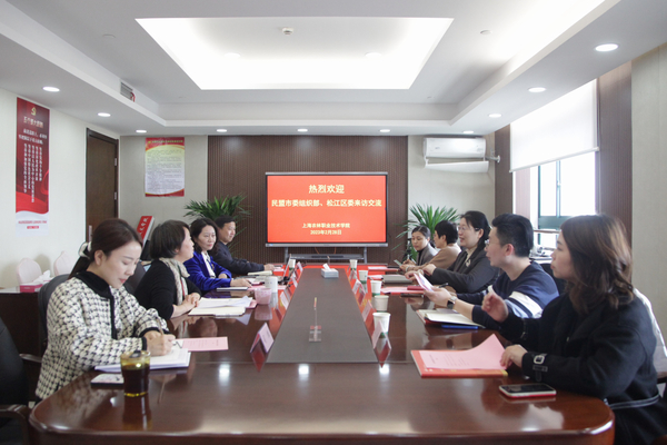 2月28日下午,在第二会议室,民盟上海市委组织部部长汪皓俊、民盟松江区委主委钱秋萍一行5人来校访问交流。学院院长、民盟盟员陈立婧,党委副书记、纪委书记陈谊出席会议。民盟上海市委组织部副部长苏麒、三级主任科员江好,民盟松江区委委员、秘书长吴晓慧,党委办公室主任费明、党委统战部副部长司维、统战部相关人员参加。会议由陈谊主持。