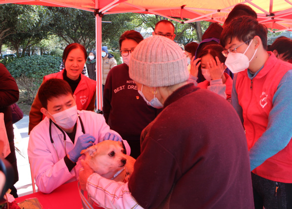 3月3日上午,动科系学生党支部和教师党支部联合开展“宠物义诊”学雷锋主题党日活动,参加岳阳街道在岳阳广场举办的“3.5”学雷锋文明实践志愿服务主题活动。活动现场,动科系学生志愿者利用所学知识,向群众发放文明养犬宣传册、普及科学养犬小知识,免费发放狗绳、狗便垃圾袋、宠物梳等宠物日常用品。教师志愿者充分发挥专业优势,对宠物犬进行基础健康检查、皮肤病检测、口腔耳道检查和清洁、修剪指甲等服务,同时向宠物主人科普饲养常识、防疫常识、传染病防控方法等。前来咨询问诊的居民络绎不绝,得到大家的一致好评。本次活动,不仅让党员教师更好的发挥了模范带头作用,真正做到以实际行动践行雷锋精神,还促使动医学子将所学专业知识应用于解决社会实际问题中,提升学生的知识运用能力、动手能力以及人际沟通能力,充分增强学生的社会责任感。