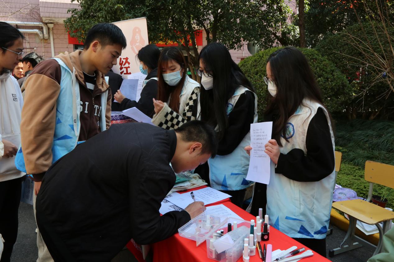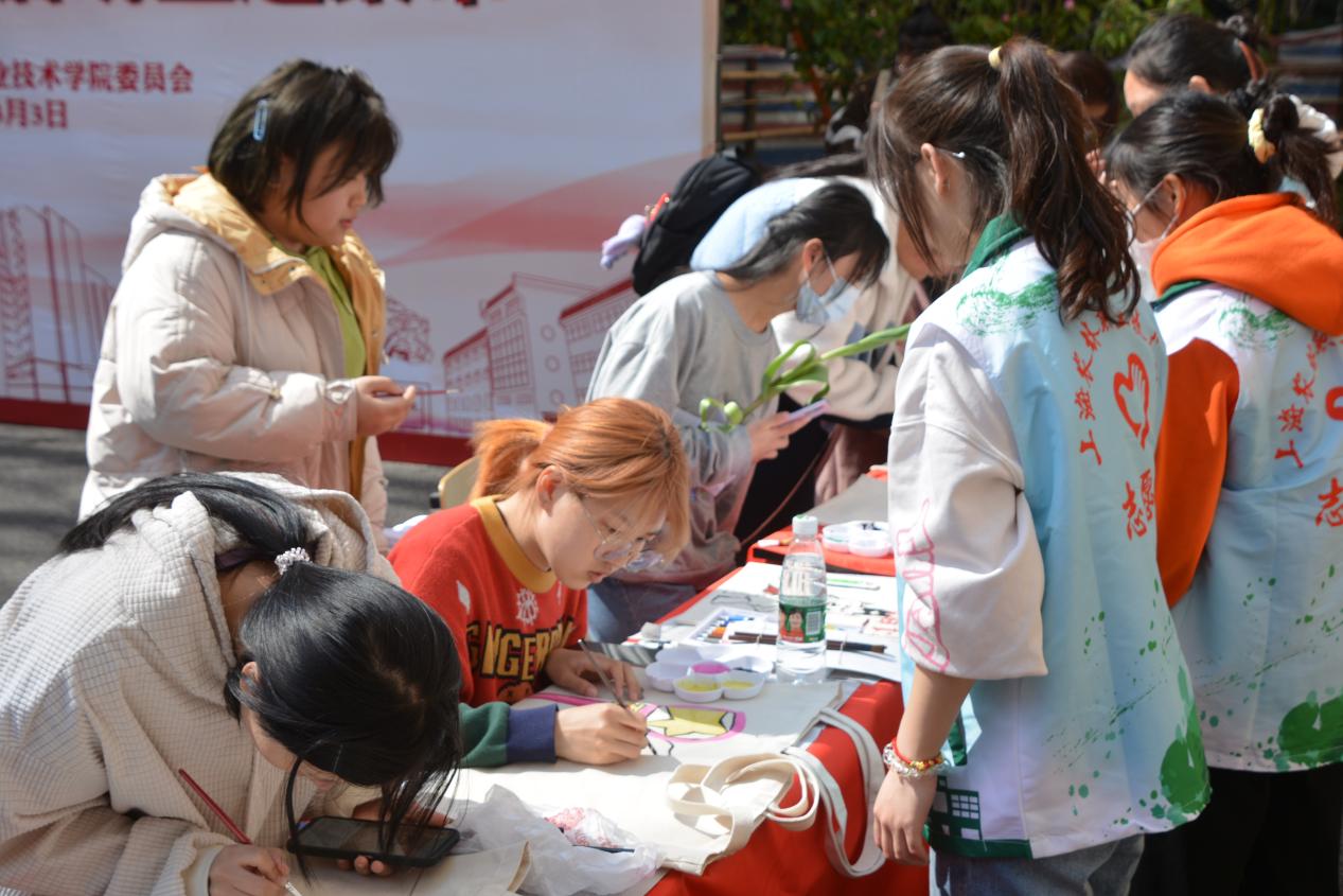 工商银行志愿者服务队向现场的同学们讲解防范金融诈骗,让同学们竖起防范金融诈骗屏障,帮助大家守护好自己的钱袋子;院青协组织同学们在空白帆布袋上绘出心目中的雷锋形象,加强对雷锋精神的认识,以实际行动学习和弘扬雷锋精神;植科系利用同学们自带的矿泉水瓶手动加工成小花瓶,并进行郁金香种球的水培养殖,提高同学们对植物种植的了解;园林系围绕生态文明建设主题,现场发放保护环境宣传单,开展互动、进行绿植翻新活动,加强同学们的动手能力;动科系开展宠物知识问答、拍摄宠物照片等活动,趣味性十足;经管系推出志愿服务时长兑换文创产品和美妆社免费为同学们美甲,引来众多学生驻足参与;生药系用超声波清洗仪帮助师生清洗眼镜,科普用眼卫生小知识;智工系推出免费手机贴膜,并开设答题互动环节,宣传弘扬雷锋精神。