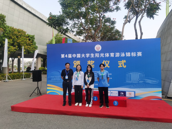 3月20日至25日,第四届中国大学生阳光体育游泳锦标赛在厦门举行。我校游泳队风景园林技术系蔡玉苑和生物医药与健康系潘国盛两名运动员参赛。经过激烈比拼,蔡玉苑同学在50米自由泳、50米蛙泳中,分别以30.49秒、36.88秒的优异成绩,斩获1金1铜牌的傲人成绩,这是继2022年在第十七届上海市运动会游泳项目上斩获1金1银后,再次实现新突破。