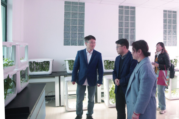 会后,在陈立婧、邵阳的陪同下,陈太安一行参观了花艺实训中心、虚拟仿真实训室、智能种植室等校内实验实训室及五厍实训基地。