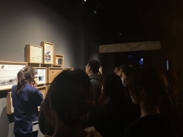 走进二楼上海消防英烈纪念馆参观,一幅巨大的“盖世英雄”消防员的插画映入眼帘,在一片“浩瀚的星空”中映射出一位位消防烈士年轻的面容,墙上那一份份珍贵的手抄本,仿佛是他们用这种方式传承着青春,听着孩子们给消防员叔叔的寄语和用最纯真的歌声致敬消防英雄。园林221班刘亚新说:“看着烈士的遗物和生平事迹,为人民他们赴汤蹈火,用生命守护生命,他们是那样地年轻,他们的青春在烈火中永生。”