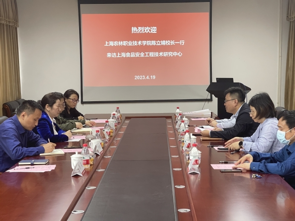 4月19日,院长陈立婧、副院长张江、生物医药与健康系主任卢洪秀、副主任徐莉、科研处副处长周燕华一行到上海食品安全工程技术研究中心访问交流。上海交通大学农业与生物学院副院长、上海食品安全工程技术研究中心主任方亚鹏、农业与生物学院食品科学与工程系系主任施春雷、党支部书记王大鹏、教授吴时敏等参加访问交流。会仪由上海食品安全工程技术研究中心秘书陈守慧主持。