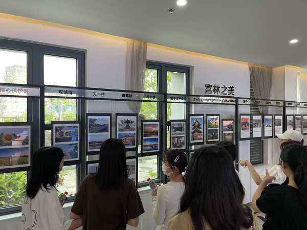 风景212班余佳慧在参观文化展示馆后说:“在讲解员的带领下,我彷佛穿越时光隧道,踏进历史长河。在这里,我体验到上海成陆的演变、先民迁徙到来、城邑特征形成、松江县府兴盛、上海城市崛起等场景,真切领会到‘佘山大境界,问根广富林’这句深意。”
