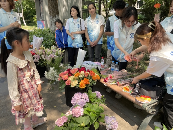 本次公益活动是“周末花市”暨“百家千讲”进社区活动中的重要环节,由广富林街道党工委率先启动,活动设立1个主会场和7个分会场。经管系师生服务队发挥专业特长,分别在松云水苑社区和御上海社区两个分会场进行花卉义卖宣传,通过宣传让更多社区居民了解此次义卖的目的,并参与到公益活动中来。在现场,师生志愿者协同自闭症孩子一起开展义卖活动,吸引了不少居民前来奉献爱心,最终筹集善款约3000余元,并全部捐助给了自闭症儿童组织。