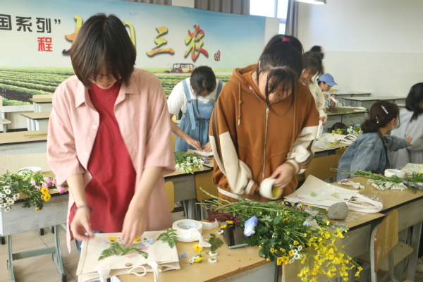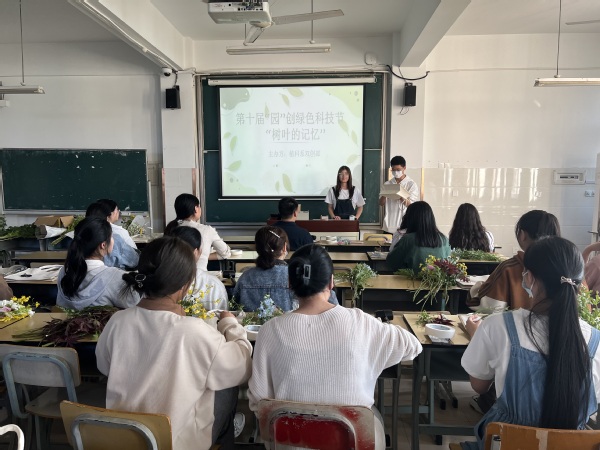 5月15日,在一教413,植物科学技术系举办第十届“园”创绿色科技节系列活动之“树叶的记忆”植物拓染活动,40名同学参与。