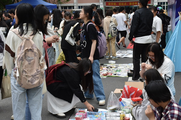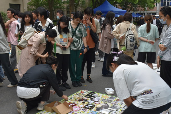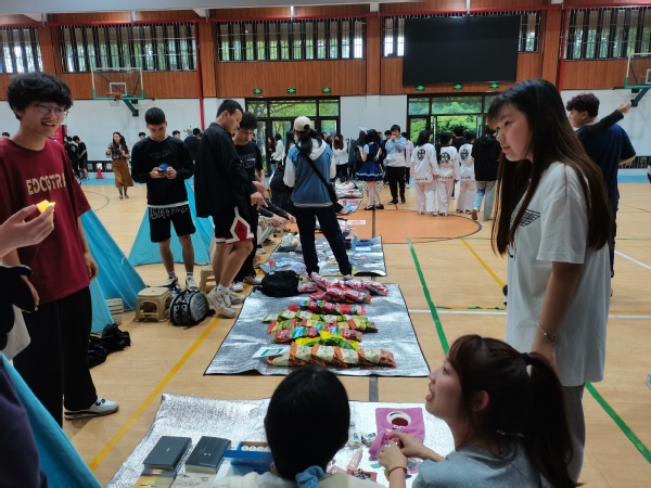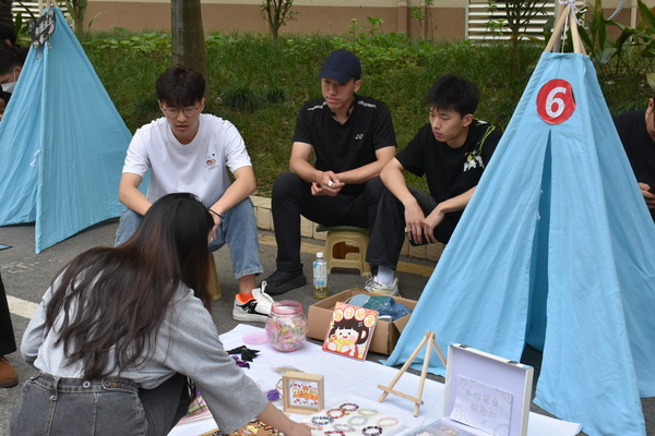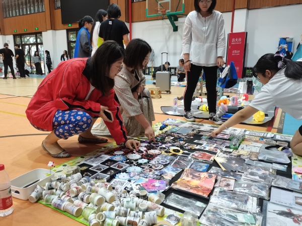 开幕式后,摊主们办理了租赁手续,租到了统一的帐篷、地垫等,开始设计自己的摊位。各种书籍、手办、鲜花、文创产品等琳琅满目的商品令人目不暇接。各位摊主竭尽所能把自己的小铺布置的有声有色。卖家们使出自己的看家本领,例如设计套圈圈活动招揽顾客;买家们也“各出奇招”,不时蹲下来在小摊上精挑细选,又与 “老板”讨价还价,活动现场十分热闹。