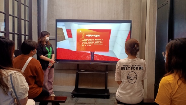 中共二大会址纪念馆位于上海市静安区老成都北路7弄30号,中国共产党第一部党章在这里诞生,展馆内有大量的资料文献可供我们阅览和学习。大家先后参观了序厅、中共二大展厅、中共二大会议旧址、党章历程厅、平民女校旧址展厅等,这些展厅通过多媒体展示、实物展示、场景再现等多种形式,生动地展示了中共二大召开的历史背景、召开过程和重要决议等内容。参观过程中,党员带领入党积极分子在展厅内宣读中国共产党誓词,让大家始终“不忘初心、牢记使命”,坚定理想信念,传承红色革命精神。
