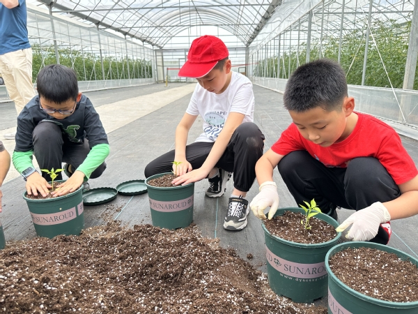 园艺师拆“盲盒”项目,根据农时安排了相应的农事体验活动,例如水稻插秧、番茄植株调整、盆栽蔬菜种植等。同学们通过项目活动,既可以了解农作物的生长习性,又能体验到参与劳动的乐趣。