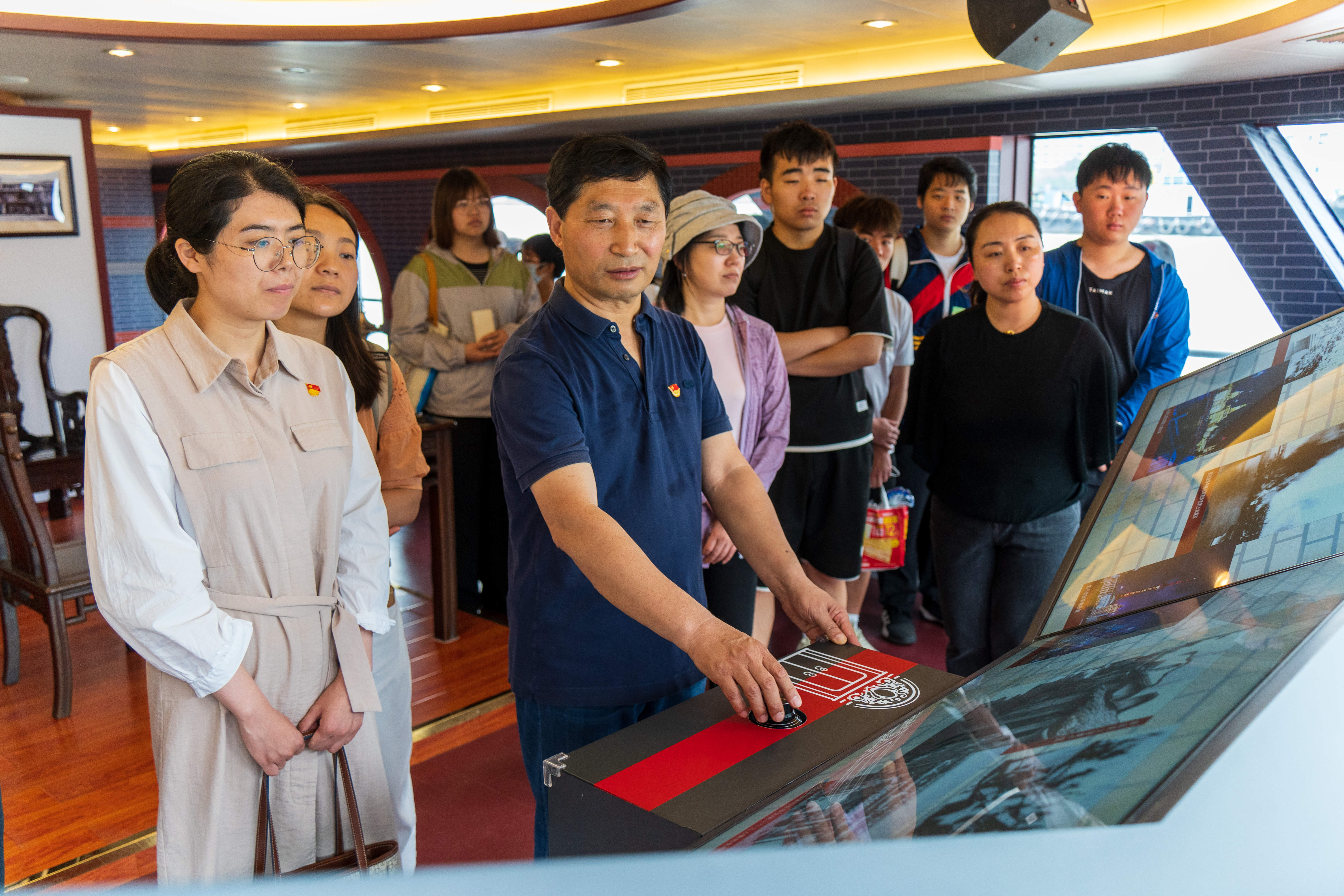 党员和入党积极分子登船在黄浦江上参加主题教育,纵览浦江两岸江景,感悟百年红色历史。游船开动后,跟随讲解员参观“初心启航地”“党的诞生地”展陈,聆听浦江两岸红色文化宣讲,回望万国建筑博览群,追寻历史记忆,传承红色基因。