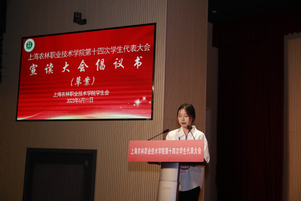 第十三届学生会执行主席姚晓贇同学向大会作了题为《踔厉奋发新时代 勇毅前行新征程——为学院力争进入国家新一轮“双高”计划建设行列贡献青春力量》的工作报告;第十三届学生会权益部负责人瞿婷嫣同学作《上海农林职业技术学院第十四次学生代表大会提案工作报告》,大会代表伍婕妤同学宣读大会倡议书。会议对《上海农林职业技术学院学生会章程》进行了修订。在各代表团分组讨论中,代表们深入学习贯彻党的二十大精神,通过理论学习、交流研讨,强化思想教育,加强思想淬炼,对党的青年工作有了更深入的理解与认识。