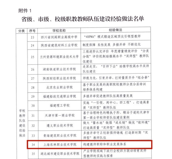 近日,教育部教师工作司公布了职业教育教师队伍建设典型工作案例,学院报送案例《构建教师职称和职业发展体系》成功入选校级职业教育教师队伍建设经验做法名单,这是学院全面推进“双高”建设,落实职业教育提质培优行动计划,不断深化高水平双师队伍建设工作取得的标志性成果。据悉,本次校级典型案例经院校申报、教育行政部门推荐、专家综合评议,全国共41所学校入选。