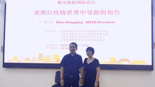 由我院与上海旅游高等专科学校、上海行健职业学院和上海南湖职业技术学院等兄弟院校旅游管理专业、相关院系联合主办的都市旅游国际论坛于6月14日在上海旅游高等专科学校举办。本次论坛的主题为“重塑后疫情世界中导游的角色”,主讲人是国际旅行与旅游教育者协会(ISTTE)主席周宗清教授。